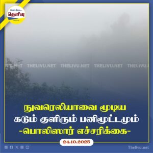 Read Moreநுவரெலியாவில் கடும் பனிமூட்டம், குளிர் மற்றும் மழை காரணமாக போக்குவரத்து சிரமம் அதிகரித்துள்ளது; பொலிஸார் வாகன ஓட்டிகளுக்கு எச்சரிக்கை.