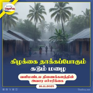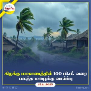 Read Moreவங்காள விரிகுடாவில் பலத்த காற்று, கனமழை மற்றும் கொந்தளிப்பான கடல் நிலை குறித்து வளிமண்டலவியல் திணைக்களம் எச்சரிக்கை வெளியிட்டுள்ளது.