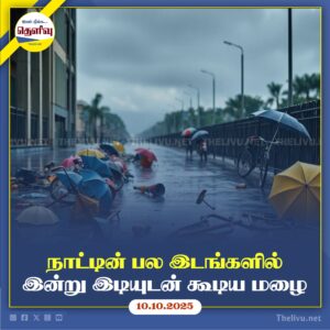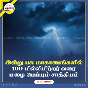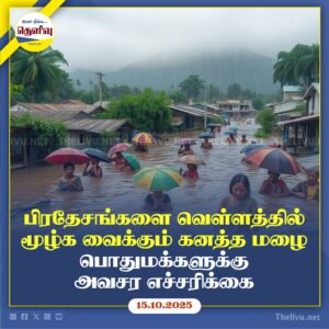 Read Moreஒக்டோபர் 16–28 வரை வடகிழக்கு பருவமழை தீவிரமடையும். 250 மிமீ வரை மழை, வெள்ள அபாயம், மக்கள் எச்சரிக்கையாக இருக்குமாறு அறிவுரை.