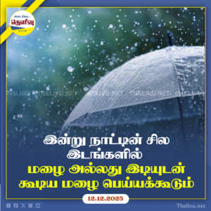 Read Moreவடகிழக்கு பருவமழை வலுப்படுவதால் பல மாகாணங்களில் மழை, இடியுடன் கூடிய மழை, பனிமூட்டம், பலத்த காற்று ஆகியவை ஏற்படும் என எச்சரிக்கப்பட்டுள்ளது.