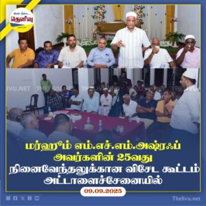 Read Moreஅட்டாளைச்சேனையில் எம்.எச்.எம். அஷ்ரஃப் அவர்களின் 25ஆம் ஆண்டு நினைவேந்தல் தினத்தை முன்னிட்டு பிரார்த்தனை நிகழ்வுக்கான விசேட கூட்டம் நடைபெற்றது.
