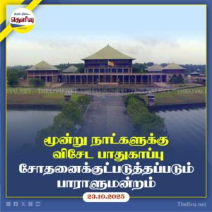 Read Moreநவம்பர் 4, 6, 7 ஆகிய திகதிளில் பாராளுமன்றம் முழுவதும் விசேட பாதுகாப்பு சோதனை மேற்கொள்ளப்படும் என சபாநாயகர் அறிவித்தார்.