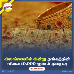 Read Moreஒரு வாரத்தில் தங்க விலை ரூ.77,000 குறைந்தது. இன்று மட்டும் ரூ.10,000 வீழ்ச்சி என கொழும்பு தங்க சந்தை தரவுகள் தெரிவிக்கின்றன.