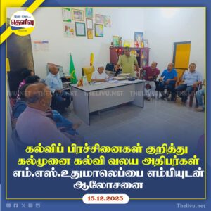 Read Moreகல்முனை கல்வி வலய அதிபர்கள் குழு கல்வித் துறையில் நிலவும் பிரச்சினைகள் குறித்து எம்.எஸ். உதுமாலெப்பை எம்பியை சந்தித்து கலந்துரையாடினர்