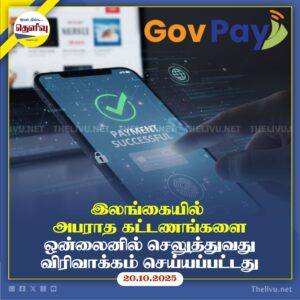 Read Moreஇன்று முதல் தென் மாகாணத்திலும் GovPay மூலம் போக்குவரத்து அபராதம் செலுத்தலாம்; விரைவில் இலங்கை முழுவதும் இச்சேவை விரிவடைகிறது.