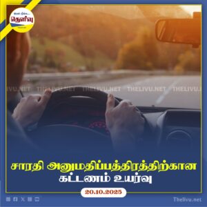Read Moreகட்டுநாயக்க விமான நிலையத்தில் சாரதி அனுமதிப்பத்திர கட்டணம் ரூ. 2,000-ல் இருந்து ரூ. 15,000 வரை உயர்வு; வெளிநாட்டினர் மற்றும் நாடு திரும்பும் இலங்கையர்கள் பயன் பெறுவார்கள்.