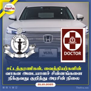 Read Moreசட்டத்தரணிகள், வைத்தியர்களின் வாகன அடையாளச் சின்னங்களை நீக்க அரசு எந்த தீர்மானமும் எடுக்கவில்லை என்று சுகாதார அமைச்சர் தெரிவித்தார்.