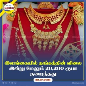 இலங்கையில் தங்க விலை இன்று ரூ.20,200 குறைந்தது; 22 மற்றும் 24 கரட் தங்க விலையில் வீழ்ச்சி தொடர்கிறது.
