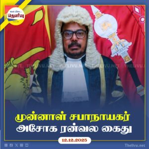 Read Moreடிட்வா சூறாவளியால் காணாமல் போன வெளிநாட்டவர்களுக்கு, 22 மாவட்டங்களில் மரணச் சான்றிதழ் வழங்க பதிவாளர் நாயகம் நடவடிக்கை எடுத்துள்ளார்.