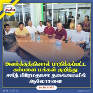 கம்பளை பகுதியில் இயற்கை அனர்த்தத்தால் பாதிக்கப்பட்ட மக்களின் நிலை குறித்து சஜித் பிரேமதாசா தலைமையில் முக்கிய ஆலோசனைக்கூட்டம் நடைபெற்றது.