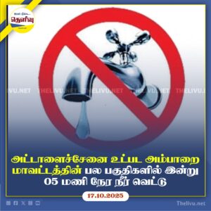 Read Moreஅம்பாறை மாவட்டத்தின் பல பகுதிகளில் இன்று மாலை 3 முதல் 8 மணி வரை கொண்டுவட்டுவான் நிலைய திருத்தப் பணிகளால் நீர் விநியோகம் தடைப்படும்.