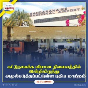 Read Moreஇன்று முதல் கட்டுநாயக்க விமான நிலையத்தில், பயணிகள் தங்கள் விமான புறப்படும் நேரத்திற்கு 4 மணிநேரத்திற்கு முன்பே நுழையலாம்.