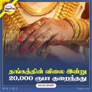 Read Moreஇலங்கையில் தங்க விலை வரலாற்று உச்சத்தை எட்டியது; 24 காரட் ரூ.4,10,000, 22 காரட் ரூ.3,79,200 என உயர்வு.