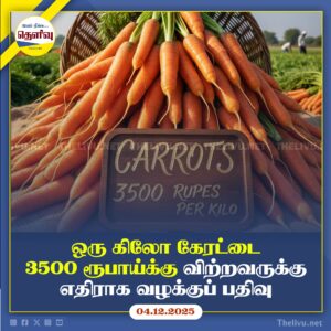 Read Moreகாலி மாவட்டத்தில் ஒரு கிலோ கேரட்டை 3,500 ரூபாய்க்கு விற்ற வியாபாரி மீது நுகர்வோர் அதிகார சபை வழக்கு பதிவு செய்தது