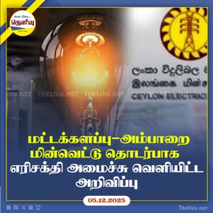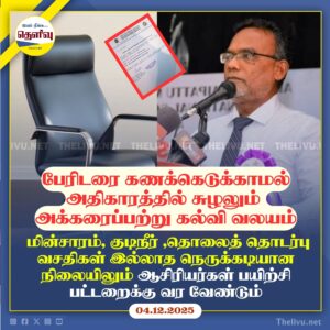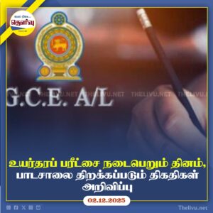 Read More2026 உயர்தரப் பரீட்சை மீதமுள்ள பாடங்கள் ஜனவரியிலும் பல்கலைக்கழகங்கள் டிசம்பர் 8லும் பாடசாலைகள் டிசம்பர் 16 முதல் திறக்கப்படும் என அறிவிப்பு
