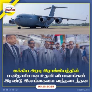 Read Moreஇலங்கையின் மீட்பு மற்றும் நிவாரணப் பணிகளுக்காக UAE அனுப்பிய இரண்டு மனிதாபிமான உதவி விமானங்கள் கொழும்பில் தரையிறங்கின