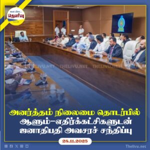 Read Moreமோசமான வானிலை காரணமாக ஏற்பட்ட அனர்த்த நிலையை கருத்திற்கொண்டு ஜனாதிபதி ஆளும் மற்றும் எதிர்க்கட்சிகளுடன் அவசரச் சந்திப்பு
