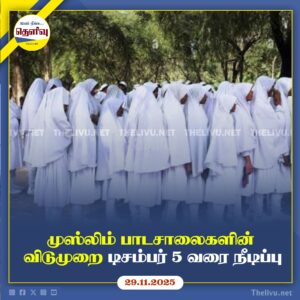 Read Moreசீரற்ற காலநிலை காரணமாக 27ஆம் திகதி முதல் மூடப்பட்ட முஸ்லிம் பாடசாலைகளின் விடுமுறை டிசம்பர் 5 வரை நீடிக்கப்பட்டுள்ளது