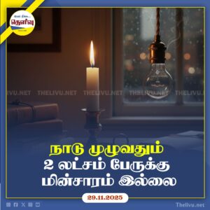 Read Moreசீரற்ற வானிலை காரணமாக இலங்கையில் பரவலான மின்தடை ஏற்பட்டுள்ளது. 2 லட்சம் பேர் பாதிப்பு. மத்திய மாகாணத்தில் அதிக தடைகள் பதிவாகின.