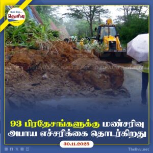 Read Moreமோசமான வானிலை காரணமாக 11 மாவட்டங்களின் 93 பகுதிகளுக்கு மண்சரிவு சிவப்பு எச்சரிக்கை நீடிக்கப்பட்டு, பல இடங்களில் வெளியேறல் அறிவிப்பு வழங்கப்பட்டது.