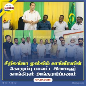 Read Moreஸ்ரீலங்கா முஸ்லிம் காங்கிரஸின் கொழும்பு மாவட்ட இளைஞர் காங்கிரஸ் தாருஸ்ஸலாமில் அதிகாரப்பூர்வமாக துவங்கியது. கல்வி, வேலைவாய்ப்பு, சுகாதாரம், போதை ஒழிப்பு உள்ளிட்ட சமூக முன்னேற்றம் இலக்காக அறிவிக்கப்பட்டது.