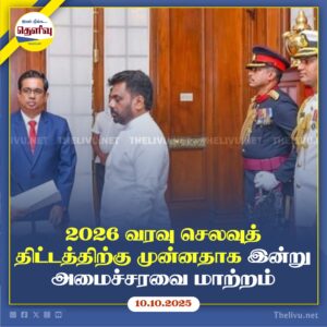 2026 வரவு செலவுத் திட்டத்திற்கு முன், தேசிய வளர்ச்சி இலக்குகளை விரைவுபடுத்த அமைச்சரவை மறுசீரமைப்பு இன்று ஜனாதிபதி செயலகத்தில் நடைமுறை.