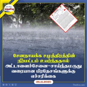 Read Moreஇலங்கையில் கடும் கனமழை காரணமாக சிவப்பு எச்சரிக்கை வெளியிடப்பட்டு, வெள்ளம், நிலச்சரிவு அபாயங்கள் உயர்ந்துள்ளதால் பொதுமக்கள் விழிப்புடன் இருக்க அறிவுறுத்தப்பட்டது.