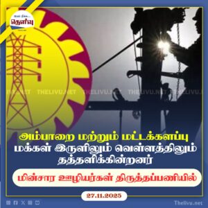 Read Moreரந்தம்பே–மஹியங்கனை மின்மாற்றி பாதை கோளாறால் அம்பாறை, மட்டக்களப்பு மற்றும் மஹியங்கனைப் பகுதிகளில் திடீர் மின்தடை ஏற்பட்டுள்ளது.