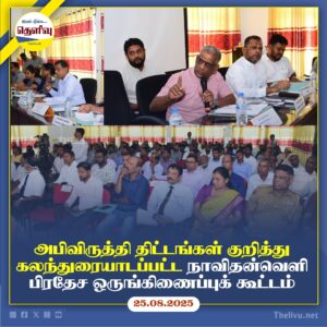 Read Moreநாவிதன்வெளி பிரதேச செயலகத்தில் நடைபெற்ற ஒருங்கிணைப்புக் குழுக் கூட்டத்தில் அபிவிருத்தி திட்டங்கள் குறித்து பாராளுமன்ற உறுப்பினர்கள் மற்றும் அதிகாரிகள் கலந்துரையாடினர்.