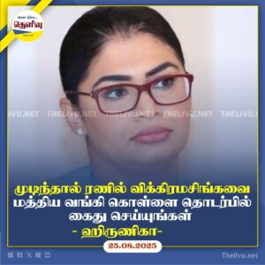 Read Moreரணில் விக்ரமசிங்கவின் கைதானது ஜனநாயகத்திற்கு எதிரானது என்று முன்னாள் எம்.பி. ஹிருனிக்கா பிரேமசந்திரா தெரிவித்தார்