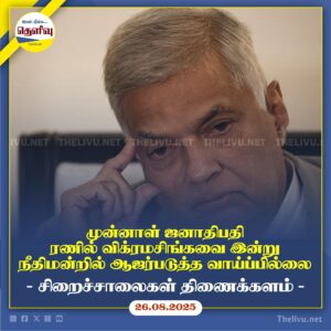 Read Moreமருத்துவமனையில் சிகிச்சை பெறும் முன்னாள் ஜனாதிபதி ரணில் விக்ரமசிங்க இன்று நீதிமன்றத்தில் ஆஜராக முடியாது என்று சிறைச்சாலைகள் திணைக்களம் தெரிவித்தது.