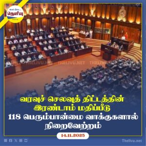 Read More2026 ஆம் ஆண்டுக்கான தேசிய மக்கள் சக்தி அரசின் வரவுச் செலவுத் திட்டம் 118 பெரும்பான்மை வாக்குகளால் இன்று பாராளுமன்றத்தில் நிறைவேற்றப்பட்டது.