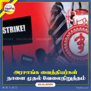 Read More2026 பட்ஜெட்டில் சுகாதார பிரச்சினைகள் தீர்க்கப்படாததால் அரசாங்க வைத்தியர்கள் நாளை முதல் வேலைநிறுத்தம் அறிவித்து போராட்டம் தொடங்குகின்றனர்.