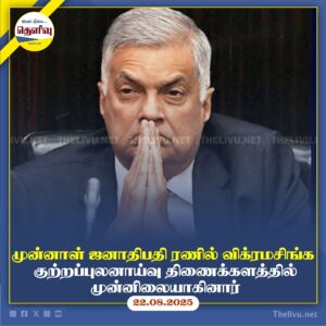 Read Moreமுன்னாள் ஜனாதிபதி ரணில் விக்ரமசிங்க, வெளிநாட்டு பயண விசாரணைக்காக C.I.Dஅயல் முன்னிலையானபோது கைது செய்யப்பட்டார். இலங்கை வரலாற்றில் இதுவே முதல் முறை.