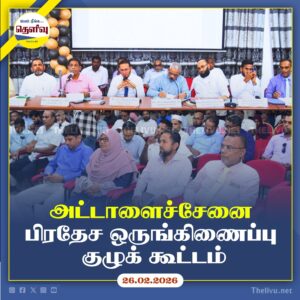 Read Moreஅட்டாளைச்சேனை பிரதேச ஒருங்கிணைப்புக் குழுக் கூட்டத்தில் அபிவிருத்தித் திட்டங்கள், மக்கள் குறைகள் மற்றும் அடிப்படை வசதி குறித்து தீர்மானங்கள்