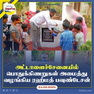 Read Moreமக்களின் நீர் பிரச்சினையை தீர்க்க அட்டாளைச்சேனையில் ரஹ்மத் பவுண்டேசன் பொதுக்கிணறுகளை அமைத்து வழங்கி மனத் நேயப்பணியை முன்னெடுத்தது.