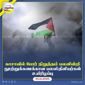 Read Moreகாசா போர் நிறுத்தத்துக்குப் பிறகும் வன்முறை தொடர்கிறது. ஒக்டோபர் 11 முதல் இதுவரை 241 பலஸ்தீனியர்கள் பலி, 619 பேர் காயம்.