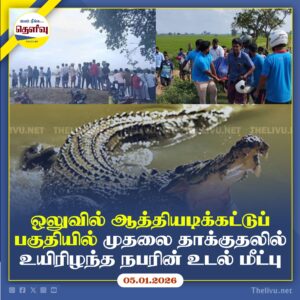 Read Moreஅம்பாறை மாவட்டத்தின் ஒலுவில் ஆத்தியடிக்கட்டுப் பகுதியில் முதலை தாக்குதலில் 37 வயது நபர் உயிரிழந்த நிலையில் அவரது உடல் இன்று மீட்கப்பட்டது