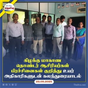 Read Moreகிழக்கு மாகாண தொண்டர் ஆசிரியர்கள் எதிர்நோக்கும் சவால்கள், பணிச்சுமைகள் மற்றும் நிரந்தர நியமனம் தொடர்பான தேவைகள் குறித்து இடம்பெற்ற கலந்துரையாடல்
