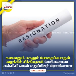 Read Moreபோதைப்பொருள் குற்றச்சாட்டில் கணவர், மகன் சிக்கியதால் பேலியகொடை என்.பி.பி பெண் உறுப்பினர் திஸ்னா நிரஞ்சலா குமாரி பதவியை இராஜினாமா செய்தார்.