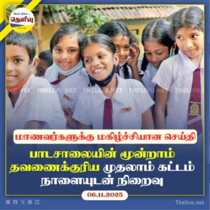 Read Moreஅரச பாடசாலைகளின் மூன்றாம் தவணை நவம்பர் 07ல் நிறைவு. தமிழ், சிங்கள, முஸ்லிம் பாடசாலைகளின் ஆரம்பம் குறித்து புதிய திகதிகள் அறிவிக்கப்பட்டது.