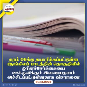 Read MoreNIE தயாரித்த 6 ஆம் ஆண்டு ஆங்கில பாடத்தொகுதியில் சர்ச்சைக்குரிய இணையதளம் இடம்பெற்றதாக உறுதி செய்யப்பட்டு விநியோகம் நிறுத்தப்பட்டுள்ளது.