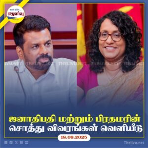 Read Moreஇலஞ்சம் மற்றும் ஊழல் ஒழிப்பு ஆணைக்குழுவினால் ஜனாதிபதி அனுரகுமார, பிரதமர் ஹரினி சொத்து விவரங்கள் வெளியிடப்பட்டுள்ளது.