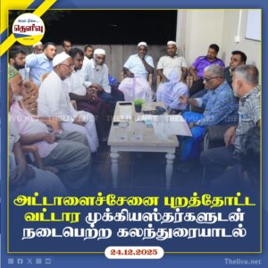 Read Moreஅட்டாளைச்சேனை 05, 09 பிரிவுகளில் மக்கள் தொடர்பை வலுப்படுத்தும் வகையில் எம்.எஸ். உதுமாலெப்பை எம்பி தலைமையில் கலந்துரையாடல் நடைபெற்றது.