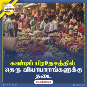 Read Moreகண்டி மாநகர சபை எல்லைக்குள் ஜனவரி 1 முதல் அனைத்து தெரு வியாபாரங்களுக்கும் முழுவதுமாக தடை விதிக்கப்படுகிறது