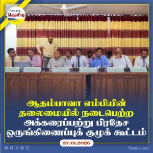 Read Moreஅக்கரைப்பற்றில் நடைபெற்ற ஒருங்கிணைப்புக் குழுக் கூட்டத்தில் அபிவிருத்தி திட்டங்கள் குறித்து அரசியல் மற்றும் நிர்வாக தலைவர்கள் கலந்துரையாடினர்.