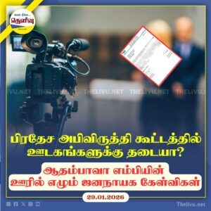Read Moreசாய்ந்தமருது அபிவிருத்தி கூட்டத்தில் ஊடகவியலாளருக்கு அனுமதி மறுக்கப்பட்டமை ஊடக சுதந்திரம், மக்களின் அறியும் உரிமை குறித்து கடும் கேள்விகளை எழுப்பியுள்ளது