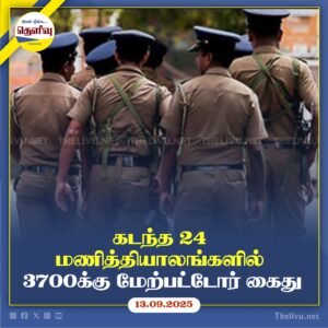 Read Moreநேற்றைய நாடளாவிய சுற்றிவளைப்பில் காவல்துறை 3,709 பேரை கைது செய்தது; 26,985 பேரிடம் சோதனை, 33 பேர் வாகன குற்றச்சாட்டில் சிக்கினர்.