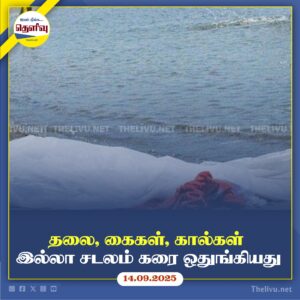 Read Moreமாரவில முது கட்டுவ கடற்கரையில் தலை, கைகள், கால்கள் இன்றி அடையாளம் தெரியாத சடலம் கரையொதுங்கியது. பொலிஸார் விசாரணை மேற்கொள்கின்றனர்.
