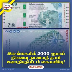 Read Moreஇலங்கை மத்திய வங்கியின் 75ஆவது ஆண்டு நிறைவைக் குறிக்கும் 2000 ரூபாய் நினைவு நாணயத் தாள் ஜனாதிபதியிடம் வழங்கப்பட்டது